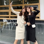 韓国オルチャン ブラック x グレーワンピースドレスOP ドレス オータムウィンターVネックスカート ニットセーター ロング 秋物 冬物 ✭韓流 K-pop アイドル アクセサリー ペンダント ネックレス ブレスレット リング ピアス バッグ 春夏秋冬 韓国ドラマ 韓国服 Kpop帽子 Kpop雑誌 BTS NiziU TWICE BLACKPINK コリアン コリア 明洞 梨泰院クラス 愛の不時着 サイコパスだけど大丈夫 23A13227215512 | Pinky Spike