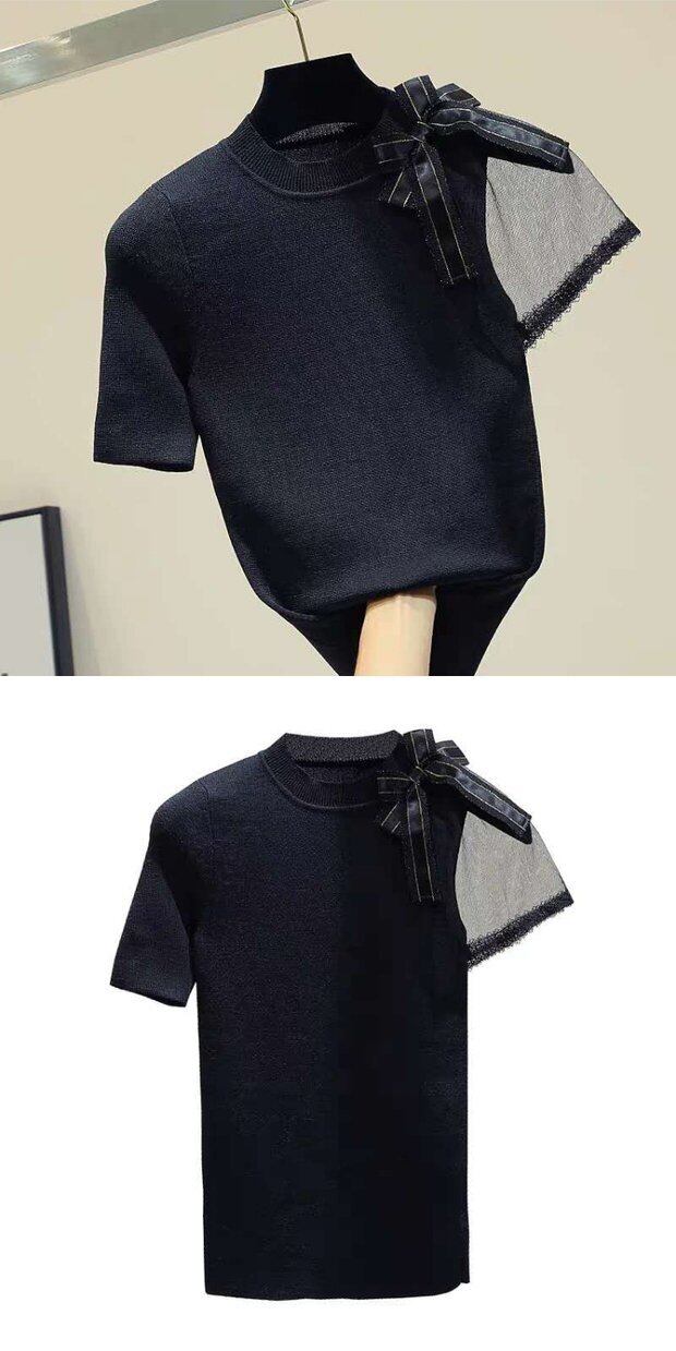 韓国オルチャン リボン薄手ニットホワイトTシャツ レディーススタイルサマーブラックトップス 夏物 ステッチ ✭韓流 K-pop アイドル アクセサリー ペンダント ネックレス ブレスレット リング ピアス バッグ 春夏秋冬 韓国ドラマ 韓国服 Kpop帽子 Kpop雑誌 BTS NiziU TWICE BLACKPINK コリアン コリア 明洞 梨泰院クラス 愛の不時着 サイコパスだけど大丈夫 23A43506005369 | Pinky Spike