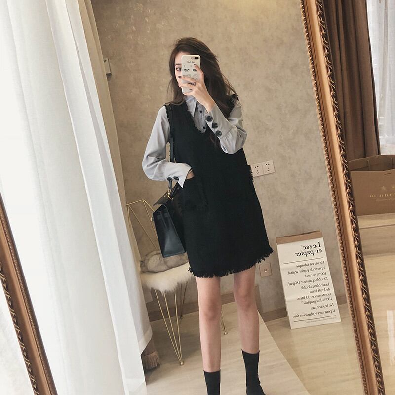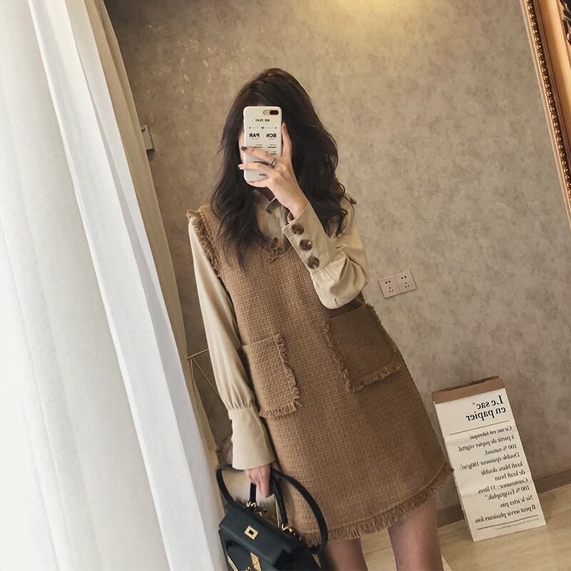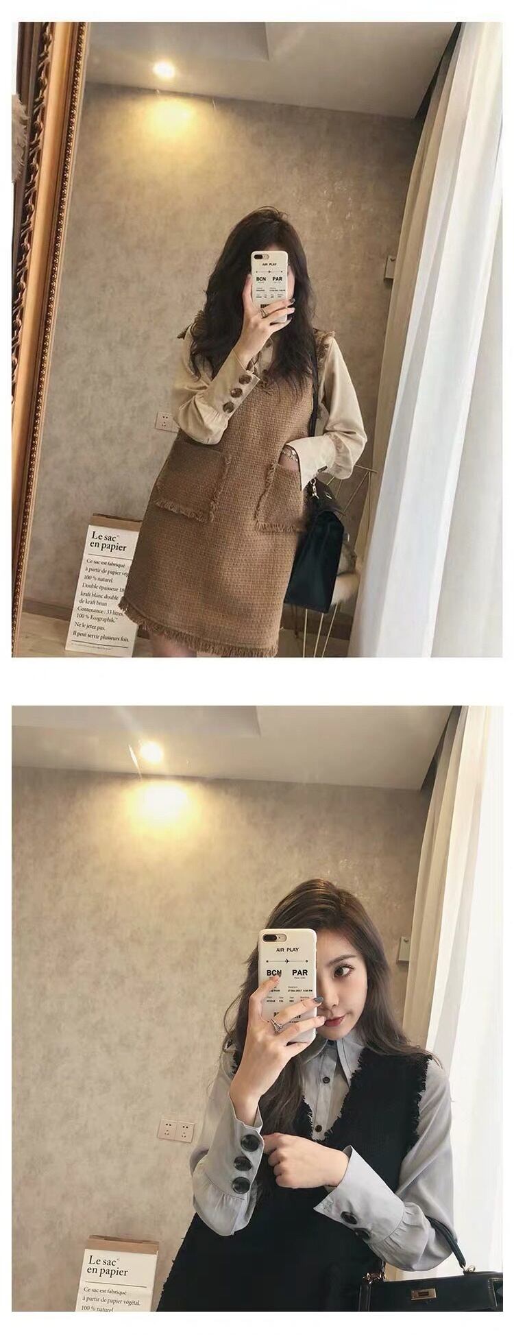 色:【セット】アプリコットシャツ+キャメルベスト,【セット】グレーブルーシャツ+ブラックベスト
