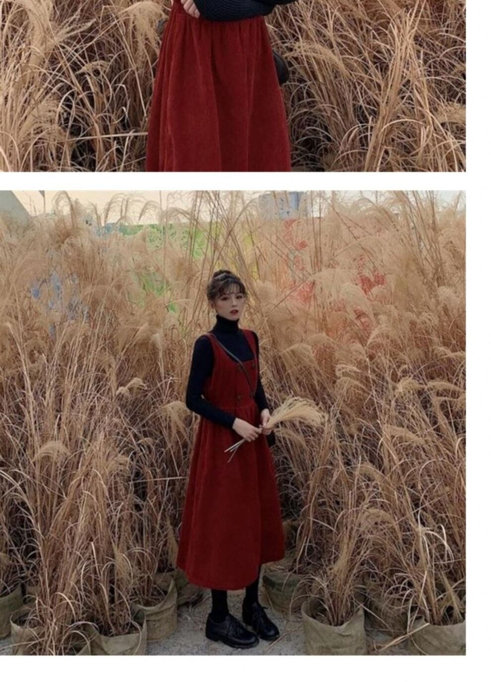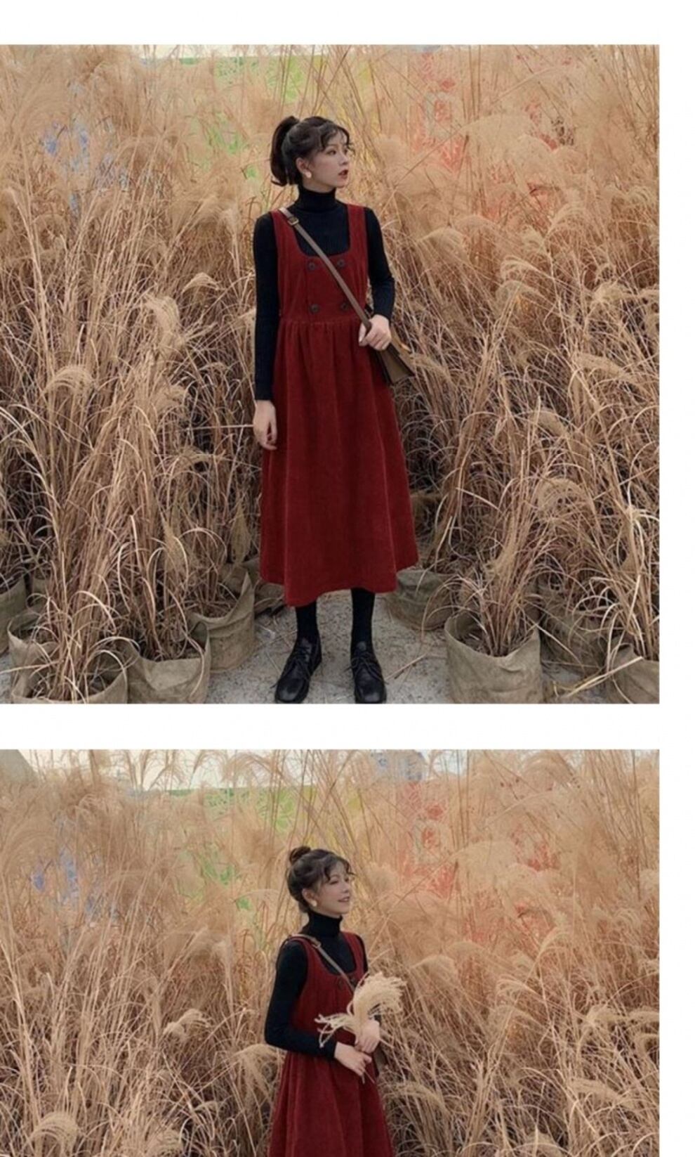 色:タートルネックセーター+ストラップスカートスーツ