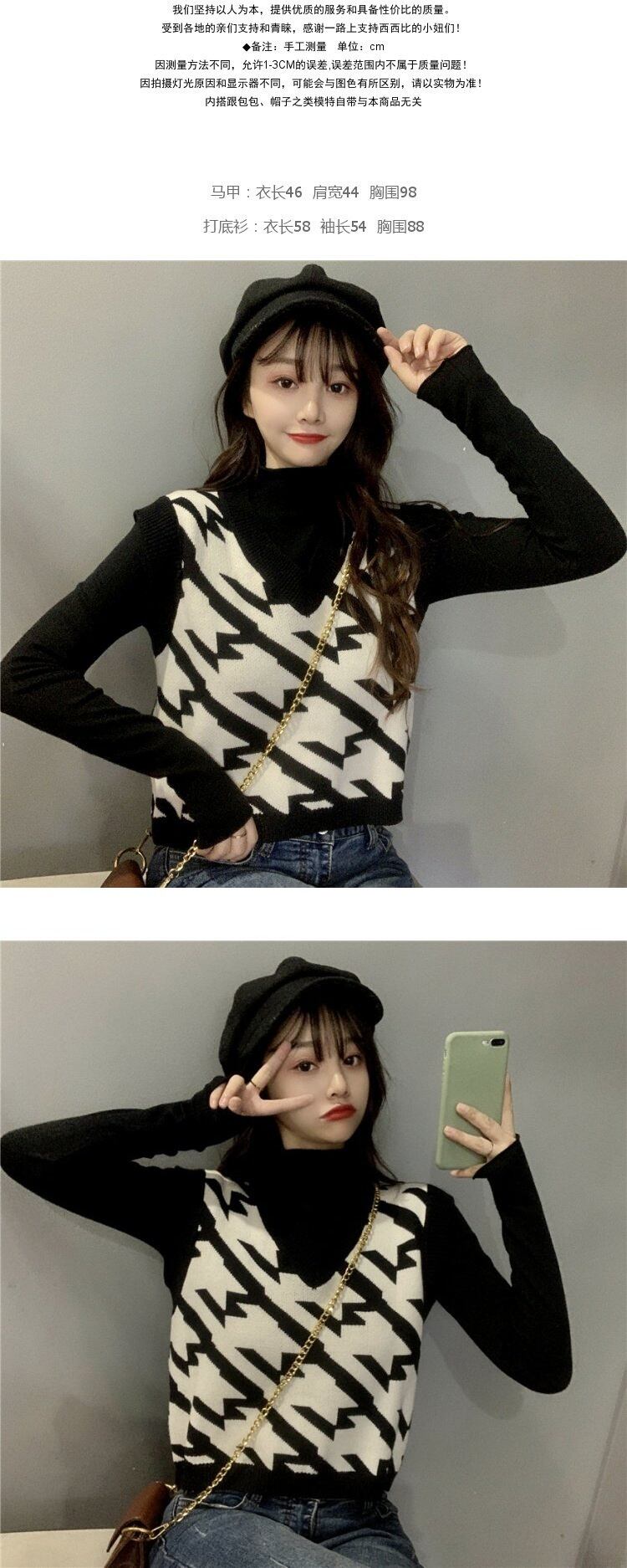 色:ベージュのボトミングシャツ,黒底シャツ,カーキニットベスト,黒のニットベスト
