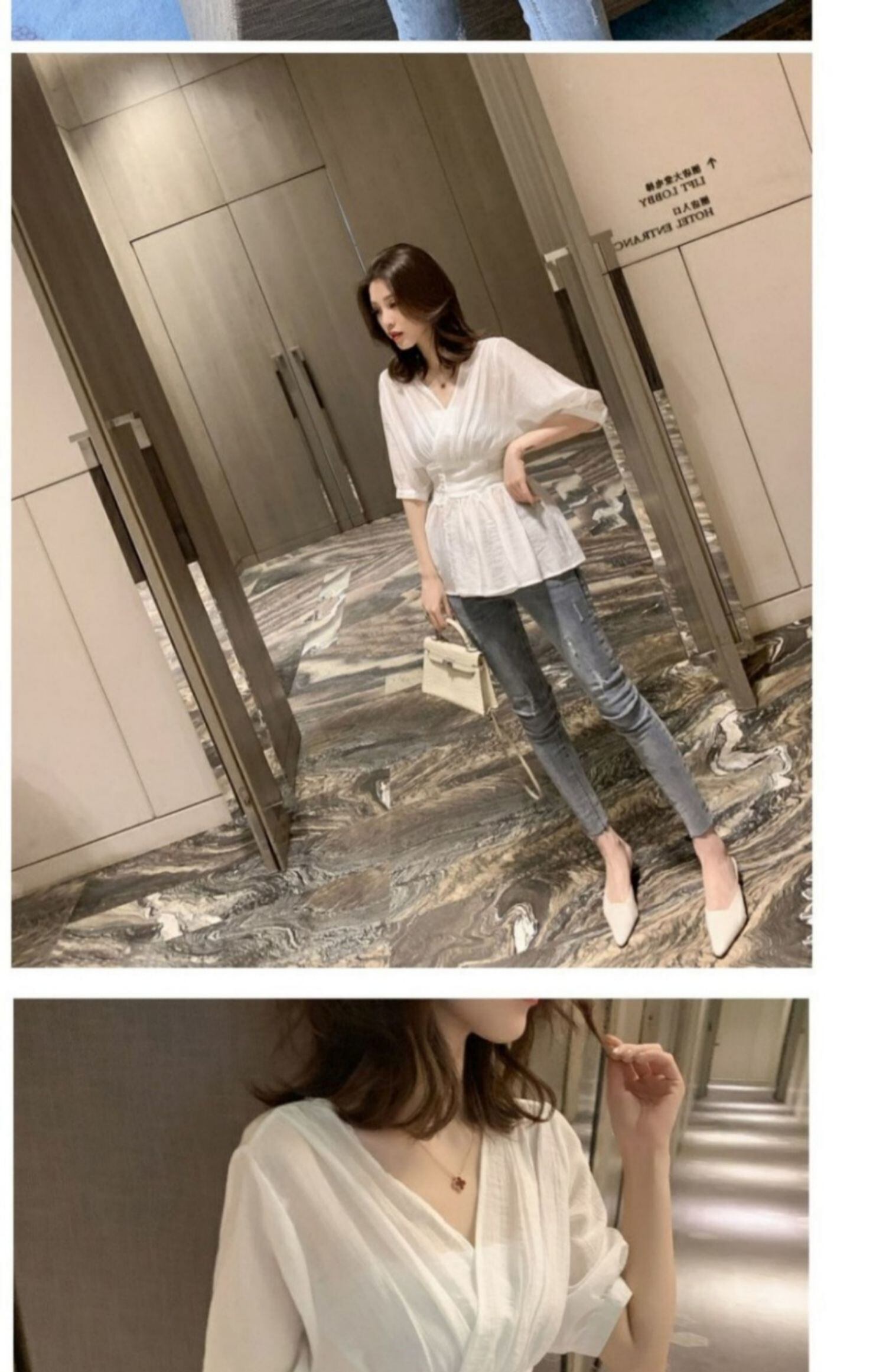 韓国オルチャン サマーホワイトブラウス シフォンシャツ Vネック 夏物 ✭韓流 K-pop アイドル アクセサリー ペンダント ネックレス ブレスレット リング ピアス バッグ 春夏秋冬 韓国ドラマ 韓国服 Kpop帽子 Kpop雑誌 BTS NiziU TWICE BLACKPINK コリアン コリア 明洞 梨泰院クラス 愛の不時着 サイコパスだけど大丈夫 23C93078325164 | Pinky Spike
